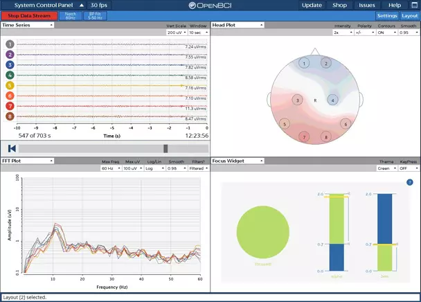 OpenBCI GUI 是 OpenBCI 强大的软件工具,用于可视化、记录和流式传输来自 OpenBCI 板的数据。数据可以实时显示、回放、以 .txt 或 .bdf/.edf 格式保存到您的计算机,也可以实时流式传输到第三方软件,如 MATLAB。