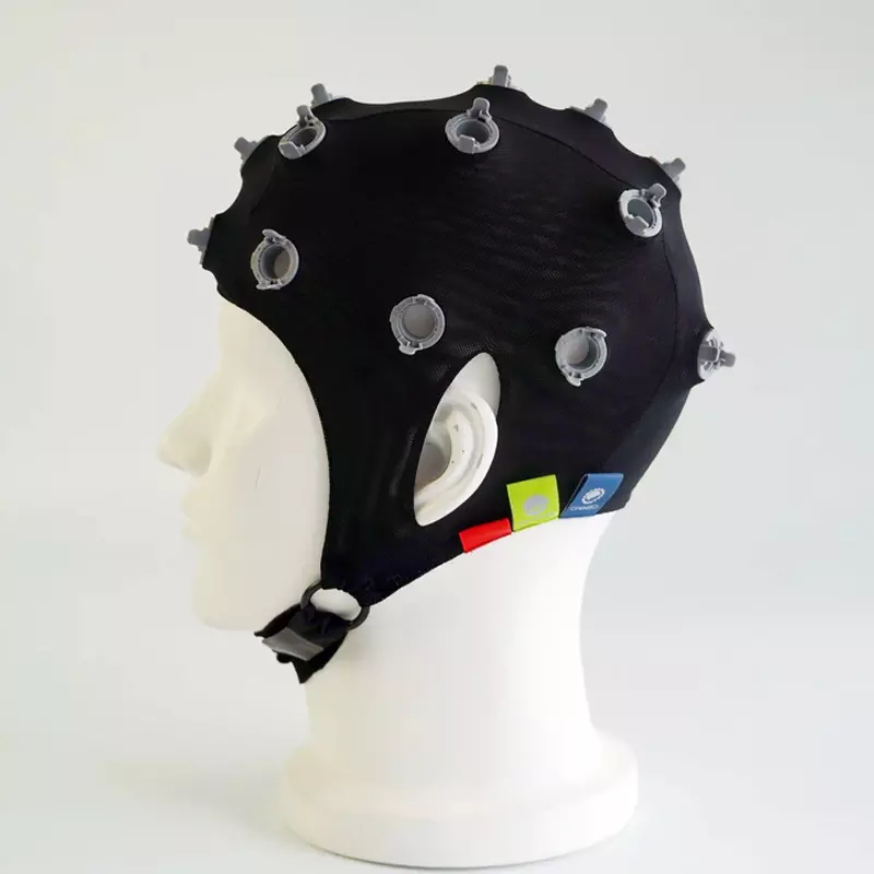 无凝胶BCI电极帽专为希望使用盐水电极进行EEG脑电图测量的用户而设计,拥有16个通道。