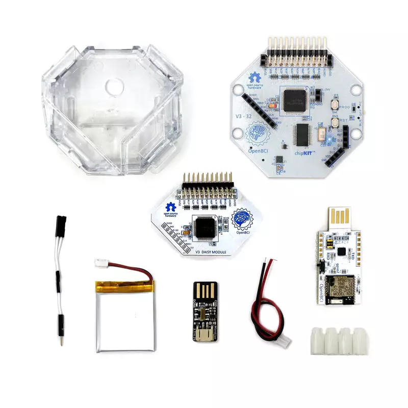 1. 可购买有源电极升级您的DIY神经技术入门套件! 2. 所有 OpenBCI 套件包都包括电池和充电器。