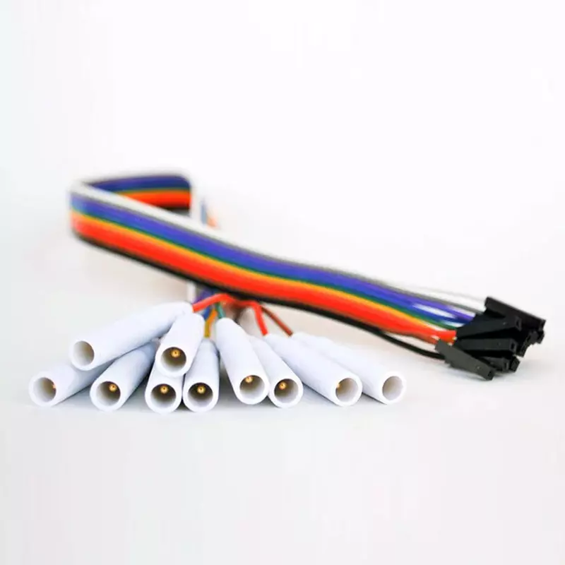 该转接线主要用于将EEG电极帽和无凝胶BCI电极帽的DIN接触式电极线缆转接到OpenBCI生物传感板。